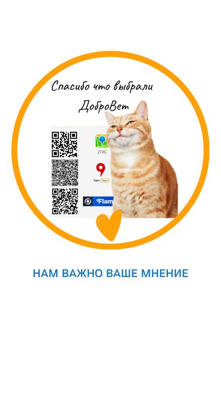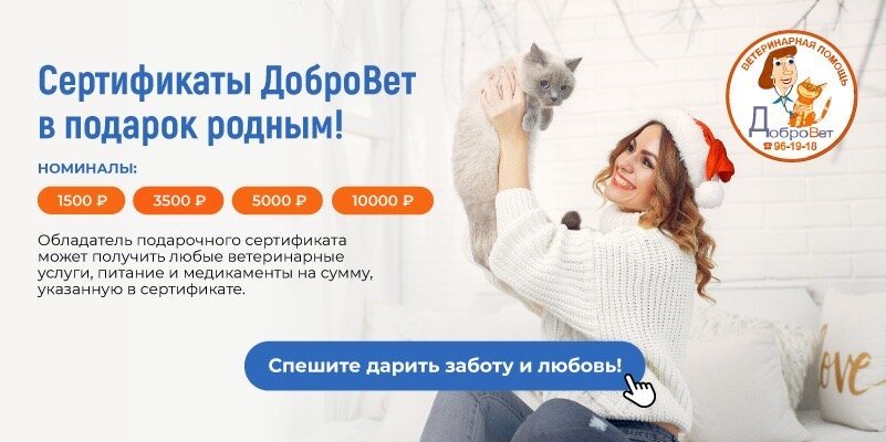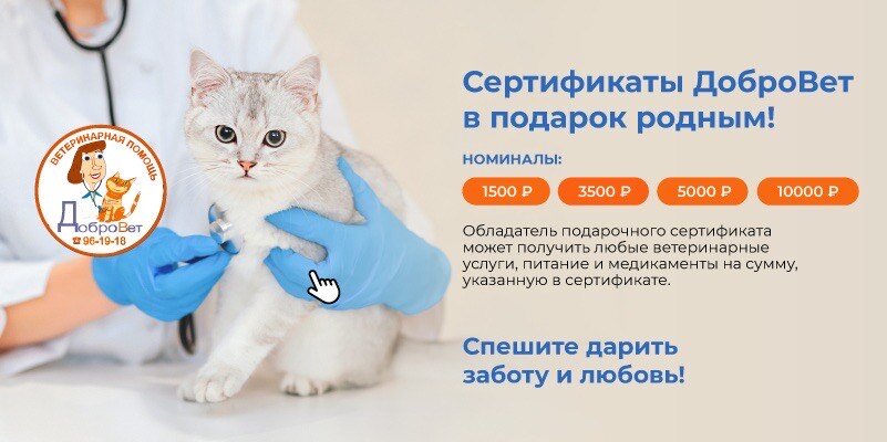 Хочу выразить большую благодарность врачам клиники «ДоброВет» за вовремя оказанную профессиональную помощь моей кошке, которой уже 10 лет.